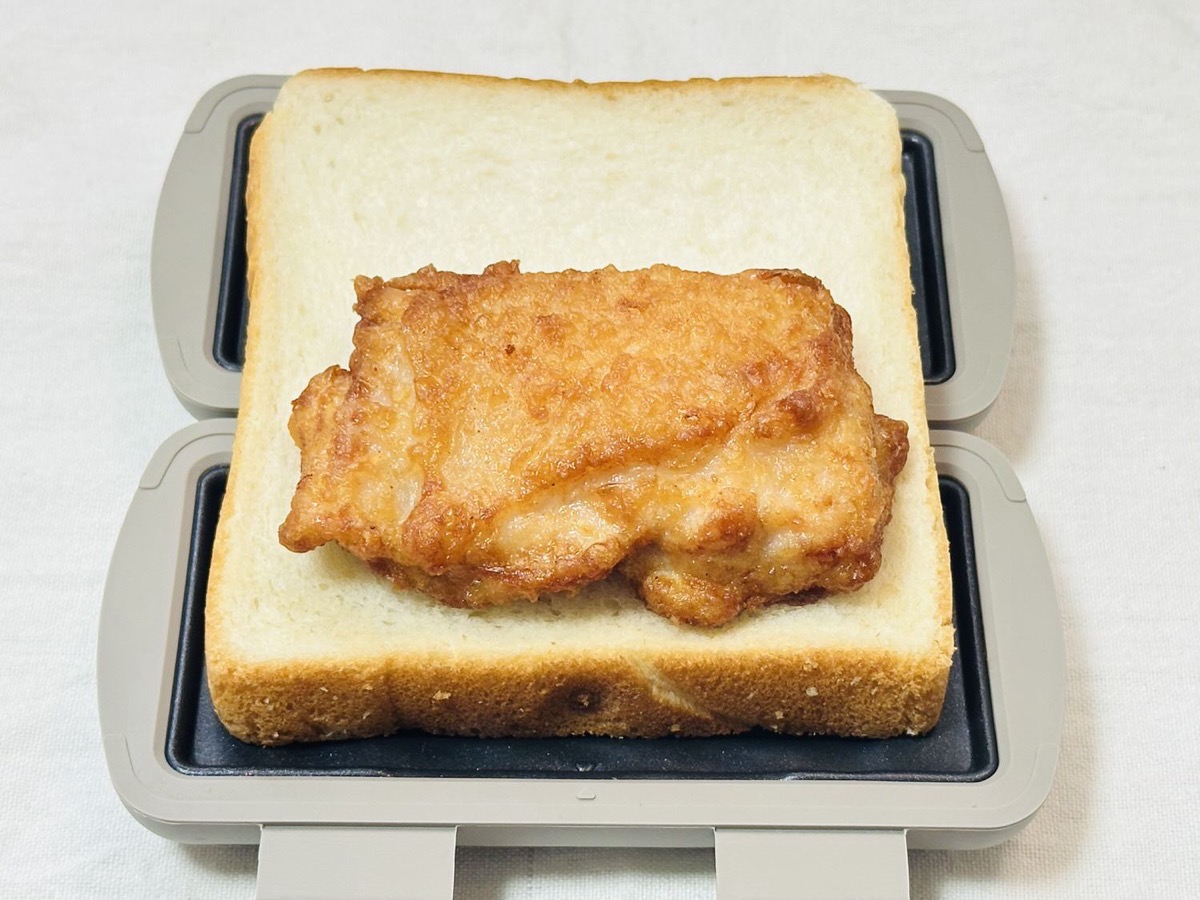 ▼【3COINS】ホットサンドをファミチキで作る【コンビニでホットサンド】