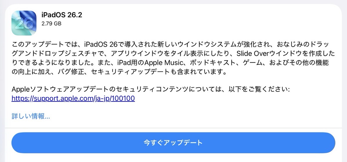 Appleが、ウインドウ表示のオプションとしてSlide Overの追加、言語の壁を越えたコミュニケーションを可能にするライブ翻訳、Liquid Glassの新しい色合い調整のオプション、ローカル収録の改善が追加さ、さらにiPad用のその他の機能、バグ修正、セキュリティアップデートを含む「iPadOS 26.1」をリリースしました。