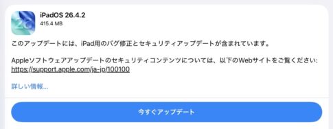 今回のアップデートのように、ソフトウェアアップデートでは、新機能やさまざまな改善が追加される一方で、パフォーマンスやバッテリー駆動時間に影響する場合があります。詳しくは以下のWebサイトをご覧ください: